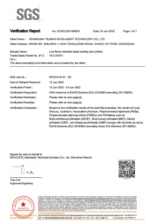 低阻燃液冷感應(yīng)線(白)YEC-SMTA-可靠性
