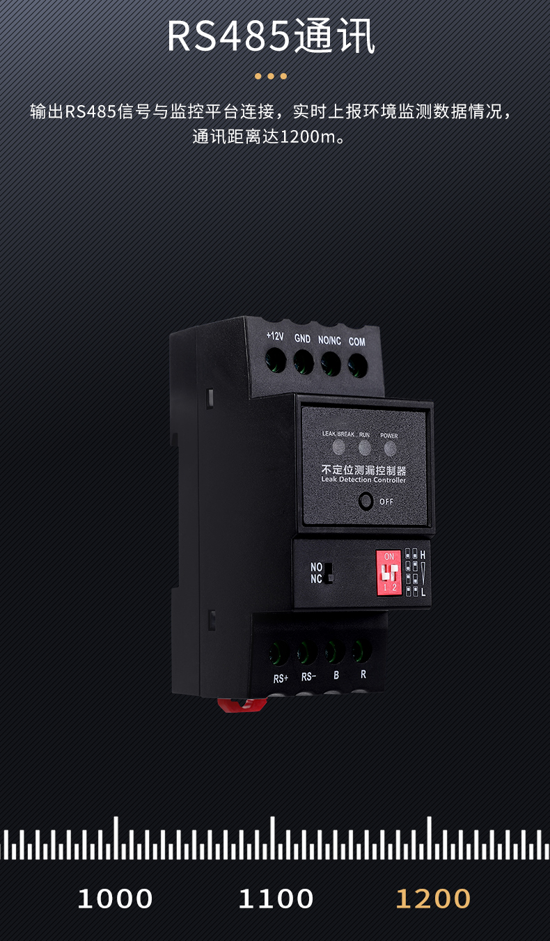 RS485通訊 | 控制器輸出RS485信號上傳泄漏數(shù)據(jù)至監(jiān)控平臺,實(shí)現(xiàn)實(shí)時集中監(jiān)控,通訊距離達(dá)1200米。 |