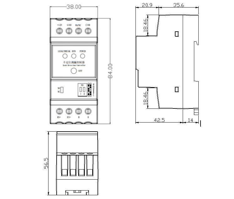 (注:繼電器輸出無法判定報(bào)警為泄漏報(bào)警亦或是斷線報(bào)警,報(bào)警類型僅通過控制器面板指示燈和內(nèi)部蜂鳴器聲音判斷,詳見功能特點(diǎn)介紹)。