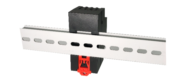 請將控制器安裝于牢固的室內(nèi)采集箱或機(jī)柜等易于維護(hù)檢查的場所,安裝位置應(yīng)避免高溫高濕、振動、腐蝕性氣體環(huán)境及其他電子雜訊干擾源等。控制器扣裝于標(biāo)準(zhǔn)的35毫米DIN導(dǎo)軌上,安裝示意圖如下: