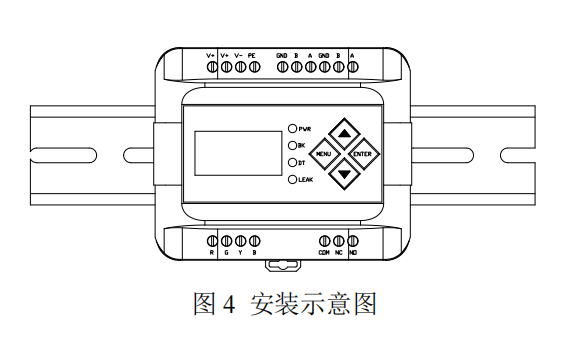 請將控制器安裝于牢固的室內采集箱或機柜等易于維護檢查的場所,控制器扣裝于標準的 DIN35mm導軌上。設備安裝時應注意以下事項: