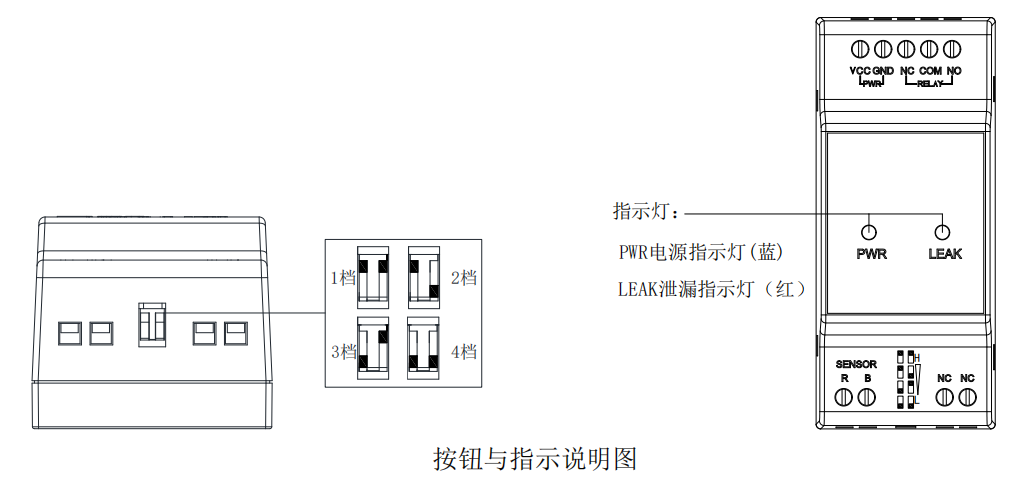 3. 控制器設置有一個靈敏度調節撥碼開關,可適應不同環境下的漏液檢測。1 至 4 檔檢測靈敏度依
